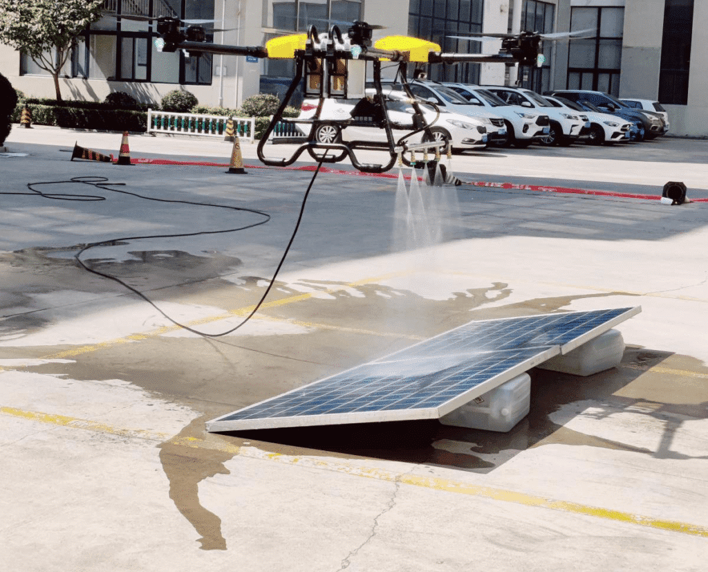Drone-powered cleaning allows secure access to residential rooftops and expansive solar farms.